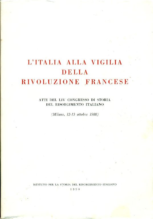 Atti del LIV Congresso di storia del Risorgimento italiano, Milano, 12-15 ottobre 1988. Interventi di Franco Venturi, Claude Petitfrère, Carlo Capra, furio Diaz, et al. . 8vo. pp. 294. . Ottimo (Fine). . . .