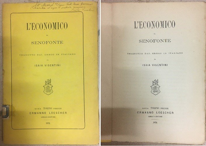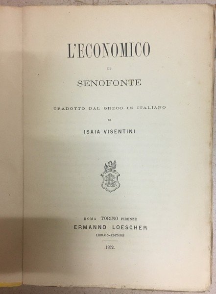L'Economico di Senofonte tradotto dal greco in italiano. | Libri antichi e moderni | Visentini Isaia.