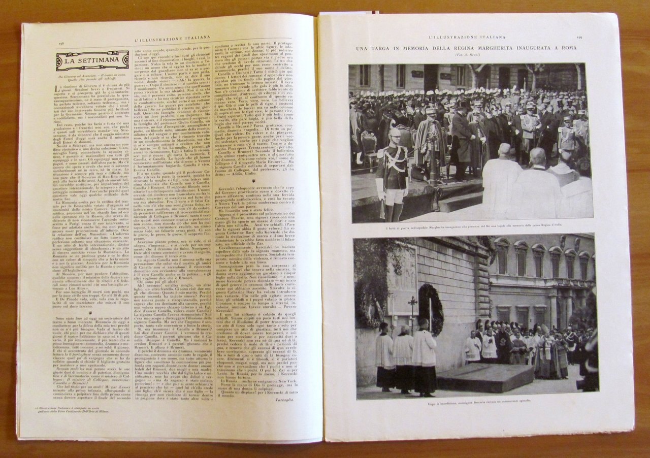 L'Illustrazione Italiana. Anno LIV - N.12 - 20 Marzo 1927. In Memoria di Margherita di Savoia; Circuito Automobilistico di Tripoli; I paesi del Marmo; San Francesco inizia il suo viaggio Mistico e molto altro ancora. Bellissime pubblicità dell'epoca e illustrazioni fotografiche in b/n. Ed. Fratelli Treves - Milano, Marzo 1927. Brossura editoriale con lieve scoloritura alla sovraccoperta e barbe ai margini esterni al retro della stessa. 29,5x40. Ottimo stato. , Ottimo (Fine)