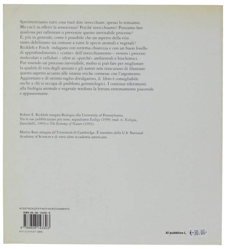 L'INVECCHIAMENTO. Una storia naturale | Libri antichi e moderni | Ricklefs Robert E., Finch Caleb E.