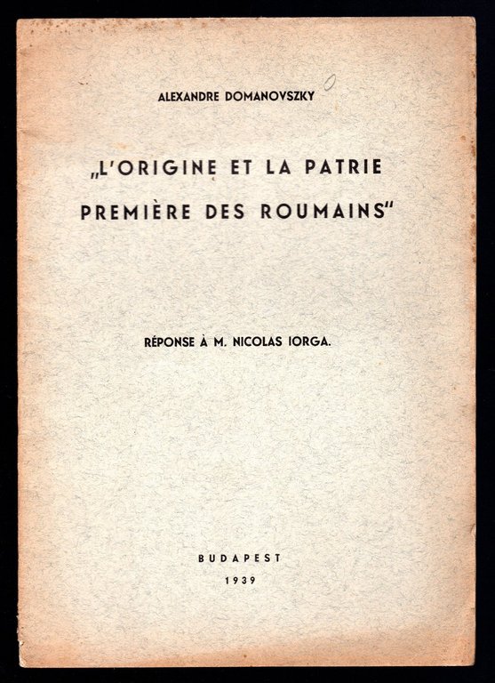 L'origine et la patrie premiere des roumains | Libri antichi e moderni | Domanovszky Alexandre, Domanovszky Alexandre