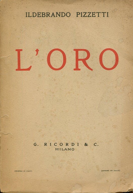 L'oro. Dramma in tre atti | Libri antichi e moderni | PIZZETTI, Ildebrando (Parma, 1880 - Roma, 1968)