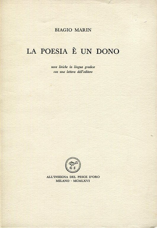 La poesia è un dono | Libri antichi e moderni | MARIN, Biagio (Grado, 1891 - Trieste, 1985)