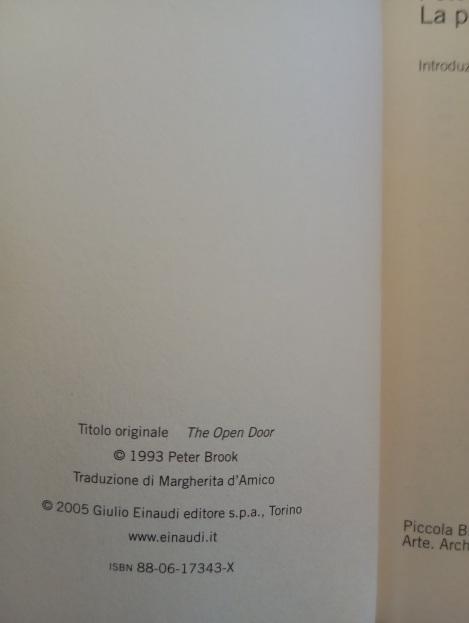 La porta aperta, Peter Brook, Einaudi, 2005