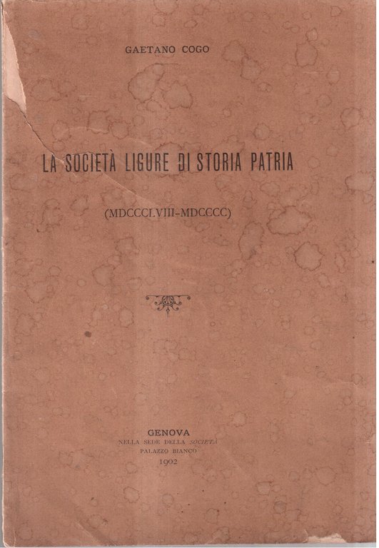 La Società Ligure di Storia Patria ( MDCCCLVIII-MDCCCC ) | Libri antichi e moderni | Gaetano Cogo