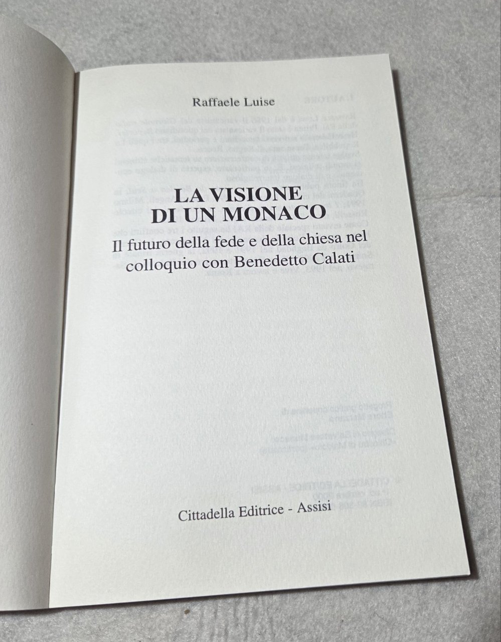 La visione di un monaco. Il futuro della fede e della Chiesa nel colloquio con Benedetto Calati | Libri antichi e moderni | Luise, Raffaele