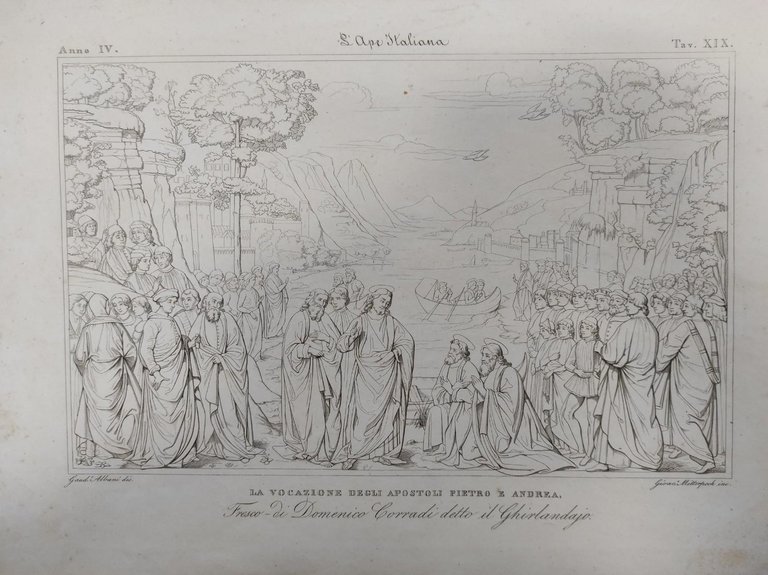 Da un dipinto di Domenico Ghirlandaio. incisione al tratto cm. 40.5 x 28.5 Buono (Good) Buon es..