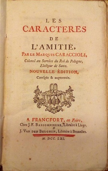 LE CARACTERES DE L’AMITIé. | Libri antichi e moderni | Caraccioli.