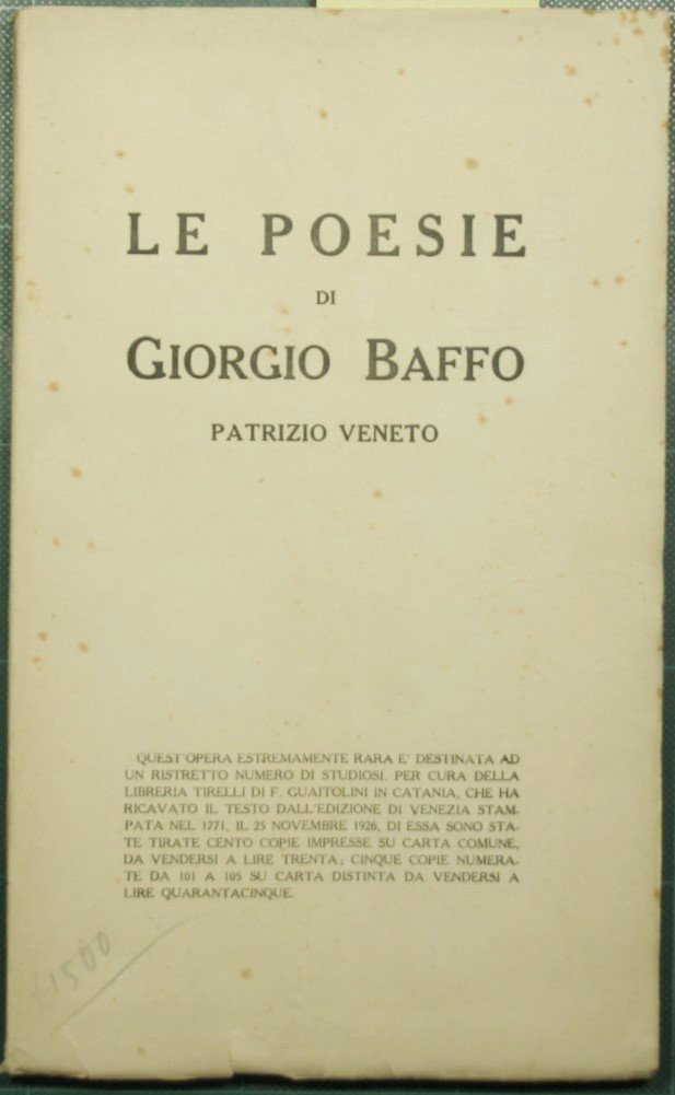 Le poesie di Giorgio Baffo patrizio veneto | Libri antichi e moderni | Baffo Giorgio