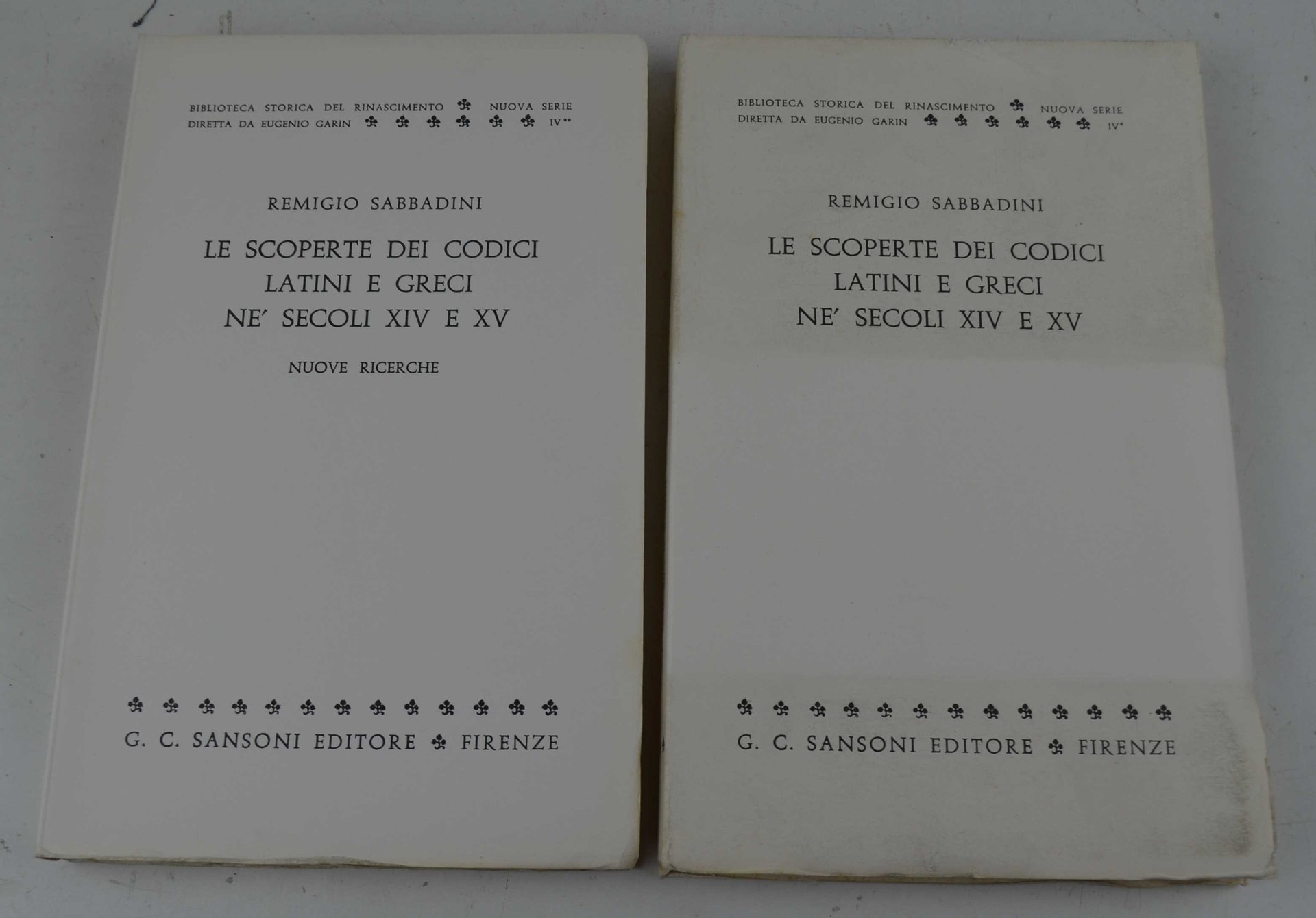 Le scoperte dei codici latini e greci ne' secoli XIV e XV. Insieme a: Le scoperte dei codici latini e greci ne' secoli XIV e XV. Nuove ricerche col riassunto filologico dei due volumi. | Libri antichi e moderni | SABBADINI R.