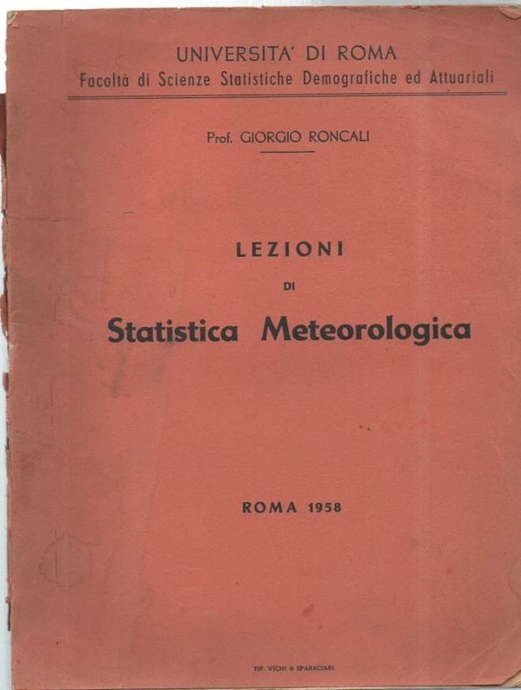 LEZIONI DI STATISTICA METEREOLOGICA (1958) | Libri antichi e moderni | RoncaliGiorgio