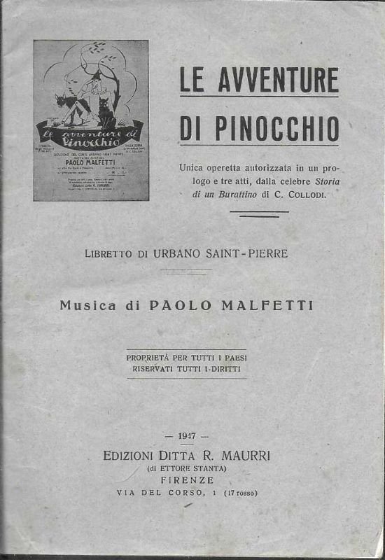 Libretto di Urbano Saint-Piere. - Musica di Paolo Malfetti. | Libri antichi e moderni | Le Avventure Di Pinocchio .