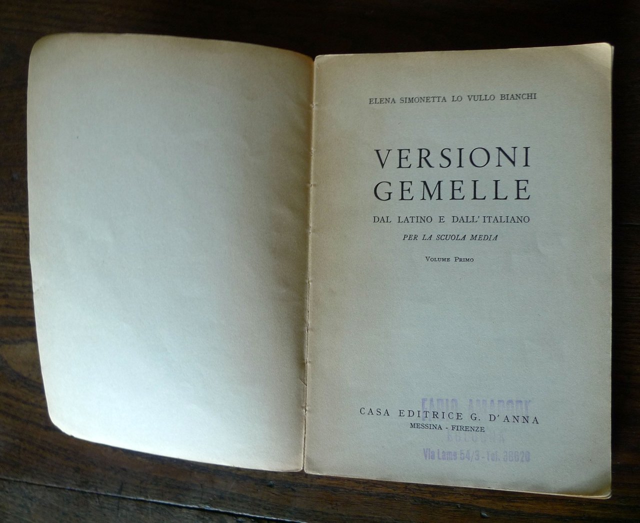 Lo Vullo Bianchi,VERSIONI GEMELLE DAL LATINO E DALL'ITALIANO I,1959[SCUOLA | Libri antichi e moderni |