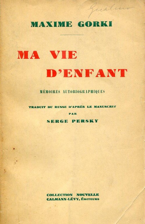 Ma vie d'enfant. Memoires autobiographiques | Libri antichi e moderni | GORKIJ, Maksim (Niznij Novgorod, 1888 - Mosca, 1936)