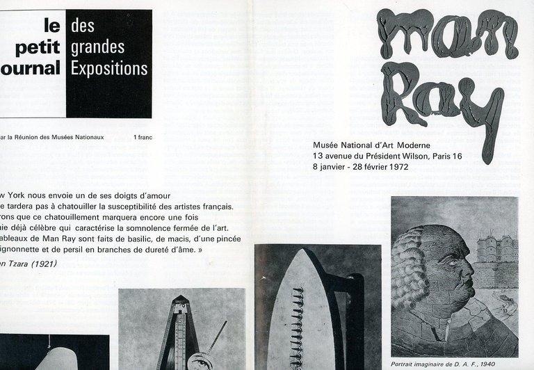Broshura pubblicata per la mostra al Musée National d'Art Moderne, Paris, 8 gennaio - 28 febbraio 1972. Testi critici (Man ray - Techniques - Les thèmes - Dada à New York.), Biografia e bibliografia. Con 10 riproduzioni di opere dell'Artista . Cm 45x32. pp. 4. . Ottimo (Fine). . . .