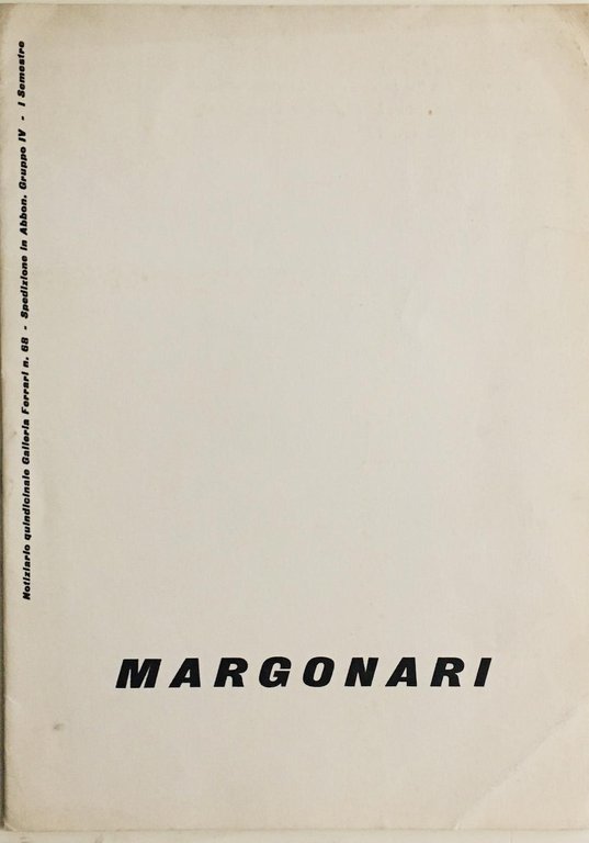 Plaquette della mostra di Renzo Margonari, Verona, Galleria Ferrari, 27 maggio 1965. Illustrato in bianco e nero. Testi di Luigi Lambertini e Alessandro Mozzambani . 8vo. pp. 6. . Molto buono (Very Good). . . .