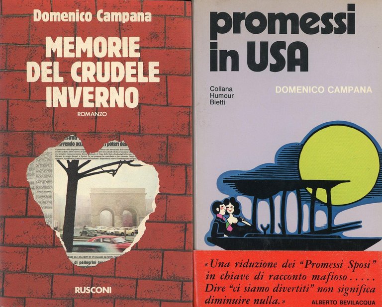 . 8vo. pp. 312. . Ottimo (Fine). . Prima edizione (First Edition). . Si aggiunge un secondo libro dell'Autore: Domenico Campana, Promessi in USA. Introduzione di Alberto Bevilacqua. Bietti, 1974. prima edizione