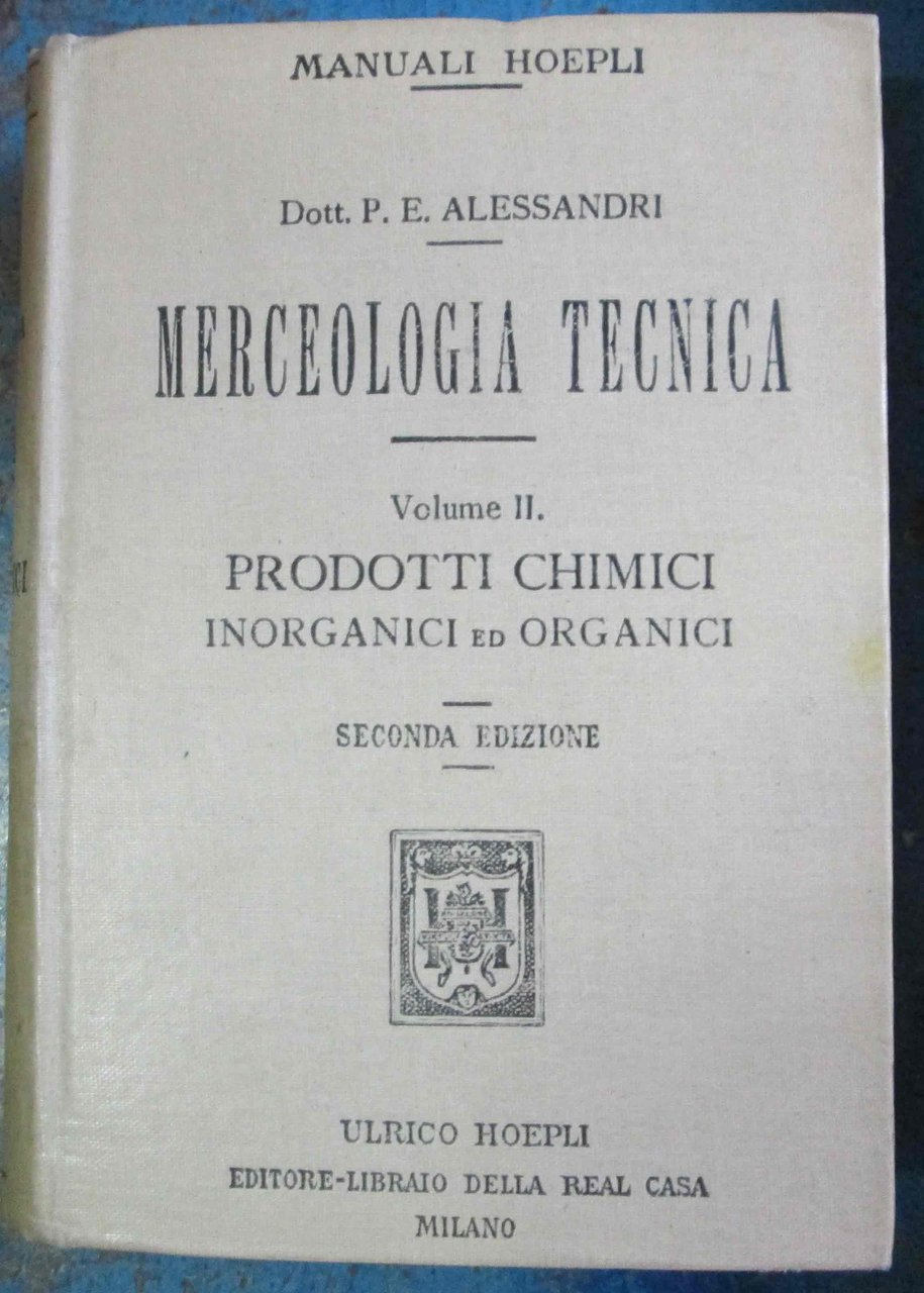 MERCEOLOGIA TECNICA. - Volume 2. Prodotti chimici inorganici ed organici. Seconda edizione. | Libri antichi e moderni | ALESSANDRI Paolo Emilio