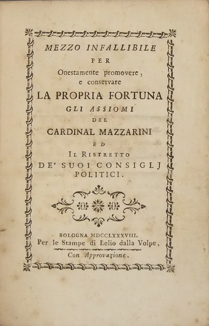 Mezzo infallibile per onestamente promuovere, e conservare la propria fortuna. Gli Assiomi del Cardinal Mazzarini ed il Ristretto de' suoi consiglj politici