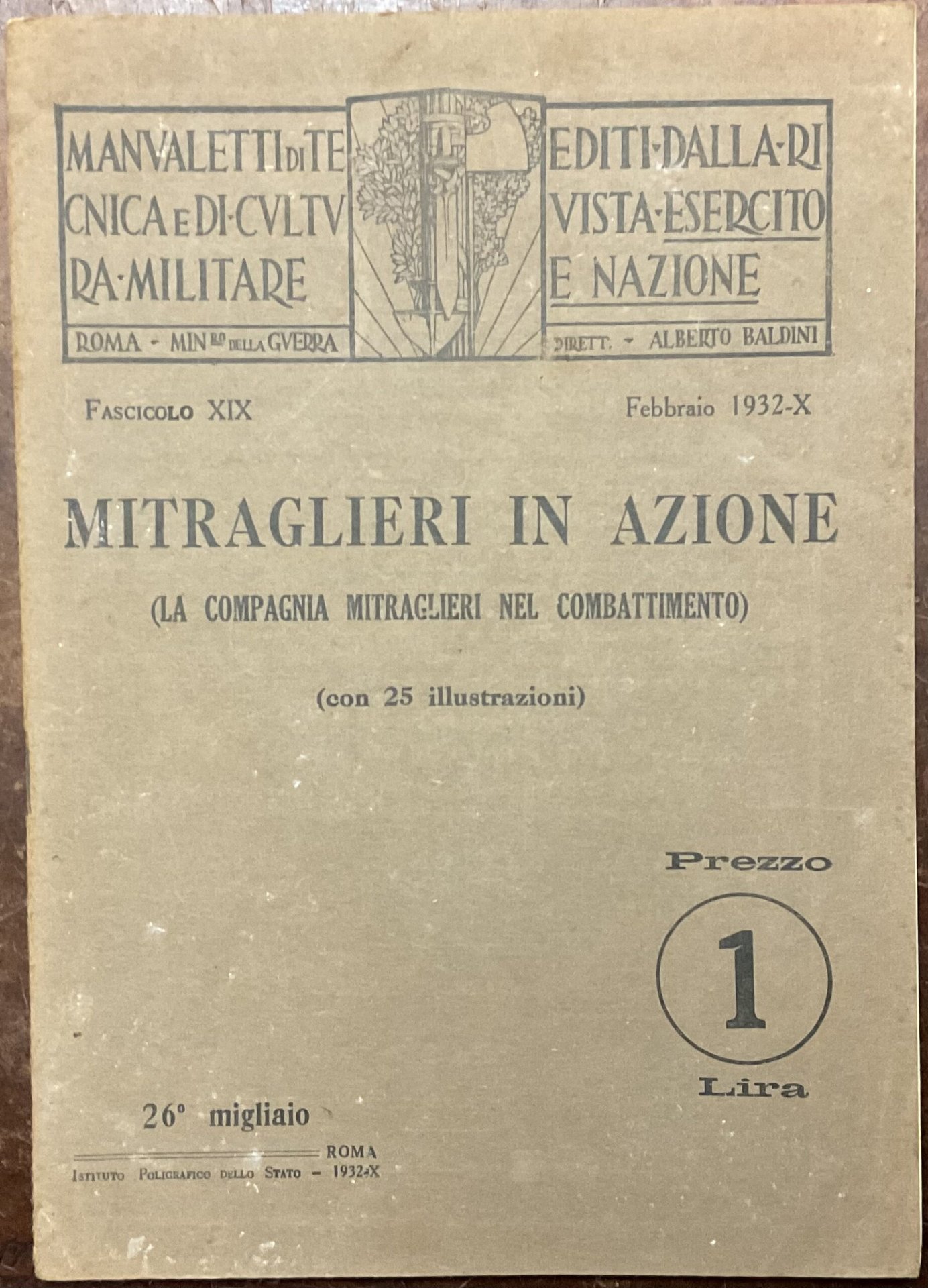 Mitraglieri in azione (La compagnia mitraglieri nel combattimento). Manualetti di tecnica e di cultura militare editi della rivista Esercito e Nazione