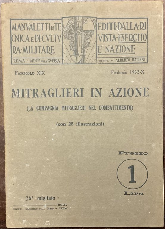 Mitraglieri in azione (La compagnia mitraglieri nel combattimento). Manualetti di tecnica e di cultura militare editi della rivista Esercito e Nazione | Libri antichi e moderni |