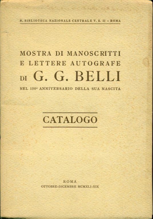 Mostra di manoscritti e lettere autografe di G. G. Belli nel 150 anniversario della sua nascita | Libri antichi e moderni | BELLI, Giuseppe Gioachino (Roma, 1791 - Roma, 1863)