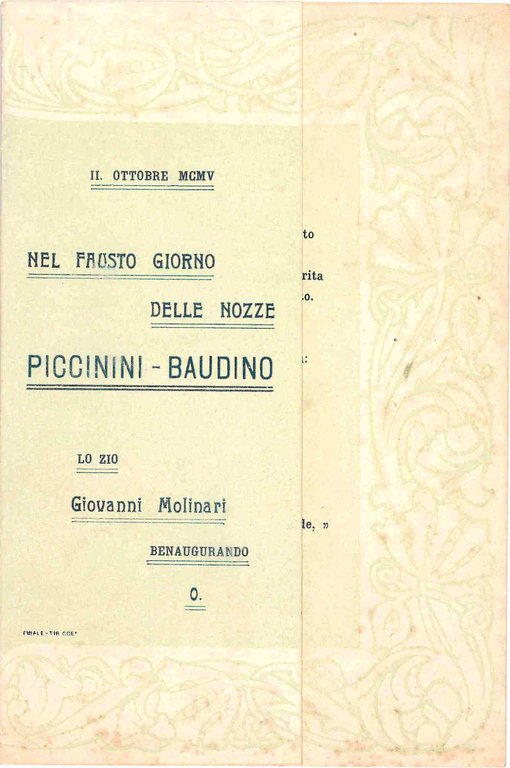 Nel fausto giorno delle nozze Piccinini - Baudino.
