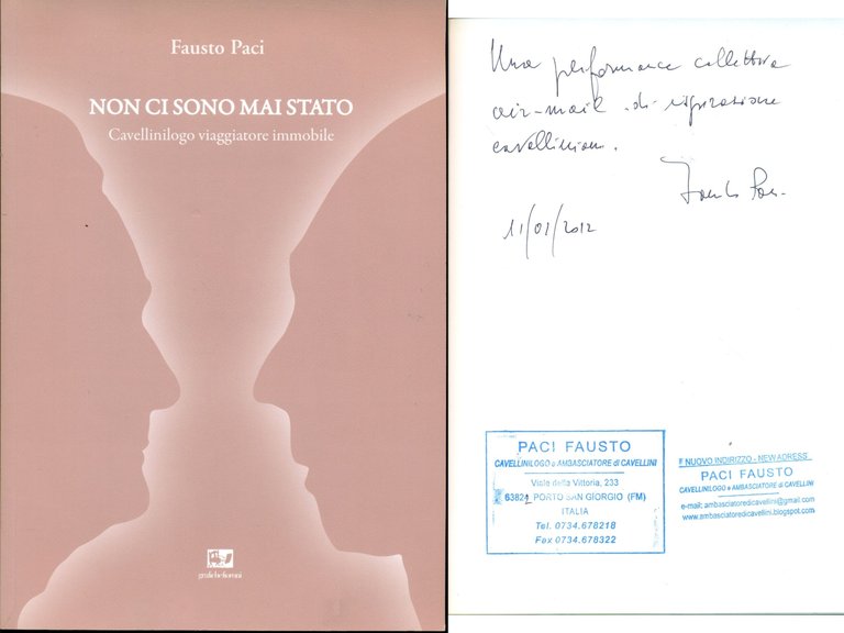 Cavellinilogo viaggiatore immobile.  Testo in italiano, inglese e arabo. Numerose illustrazioni a colori . Cm 23x16. pp. 85. Dedica e firma autografe dell'Autore (Inscribed and signed by the Author). Ottimo (Fine). . . . Fausto Paci, appassionato cultore dell'arte, con uno spiccato senso della contemporaneità, è stato uno dei primi e maggiori collezionisti di Osvaldo Licini; è stato mail artista lui stesso ed ambasciatore cavelliniano