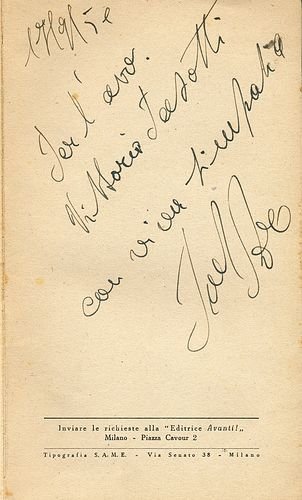 In-8°, leg. in bross. edit., pp. 228. Dedica e firma autografe dell'autore alla prima carta bianca. Alcune fioriture e bruniture alla brossura, ed altre marginali tracce d'uso.