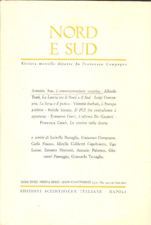 Nord e Sud. Agosto-Settembre 1971 -N. 140-141 (201-202) | Libri antichi e moderni | NORD E SUD. Rivista mensile diretta da Francesco Compagna,