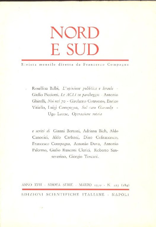Nord e Sud. Marzo 1970 - N. 123 (184)