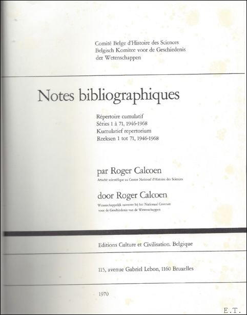 NOTES BIBLIOGRAPHIQUES. | Libri antichi e moderni | Calcoen, R.
