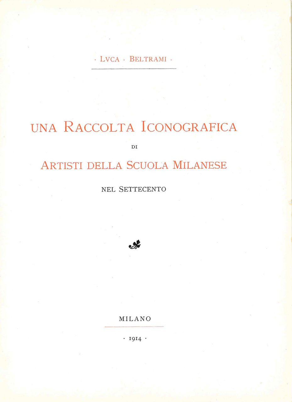 Mm. 215 x 157. Pp. 20, [2]. Brossura editoriale illustrata (leggermente brunita). Dedica dell'autore Luca Beltrami (Milano 1854 - Roma 1933; architetto, storico dell'arte, scrittore, professore presso l'Acc. di Brera, acquafortista, senatore, fu dir. dell'Ufficio per la conservazione dei monumenti lombardi) agli sposi C. Alberto Molinari e Maria Lena Mina. Segue una breve raccolta iconografica con note dei pittori annoverati presso la Scuola Milanese nel Settecento. Edizione di 200 esemplari.