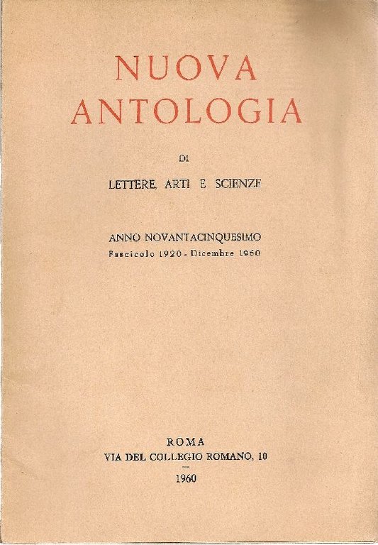 Nuova Antologia. Dicembre 1960, Anno 95, Fascicolo 1920 | Libri antichi e moderni | NUOVA ANTOLOGIA di Lettere, Arti e Scienze,