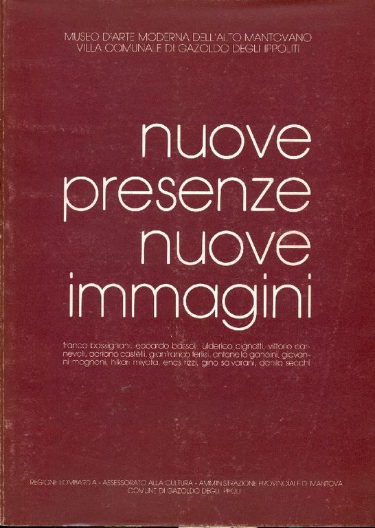 Catalogo di mostra, agosto-settembre 1984. Con 13 ill. in nero e a colori (opere di Franco Bassignani, Edoardo Bassoli, Ulderico Bignotti, Vittorio Carnevali, Adriano Castelli, Gianfranco Ferlisi, Antonella Gandini, Giovanni Magnani, Hikari Miyata, Enos Rizzi, Gino Salvarani, Danilo Secchi). Testi di Renzo Margonari, Werther Gorni, Gianfranco Ferlisi, Luciano Spiazzi e Luigi Meneghetti . 4to. pp. 30. . Ottimo (Fine). . . .