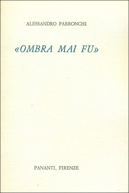Ombra mai fu | Libri antichi e moderni | PARRONCHI, Alessandro (Firenze, 1914 - Firenze, 2007),