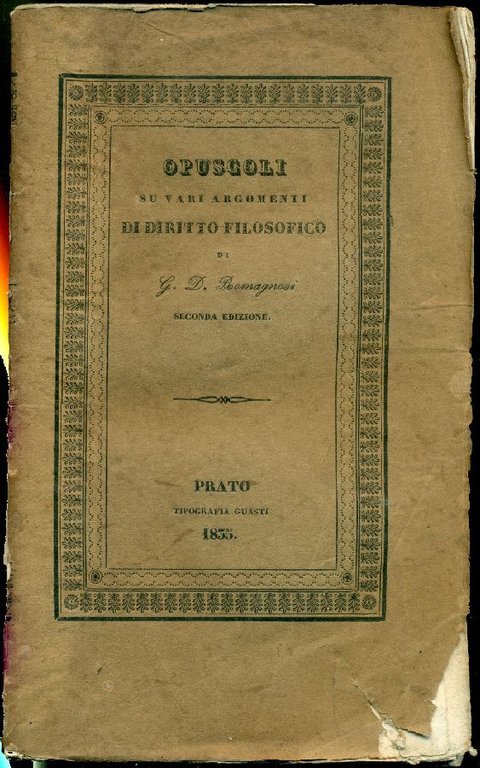 Opuscoli su vari argomenti di diritto filosofico | Libri antichi e moderni | ROMAGNOSI Gian Domenico,