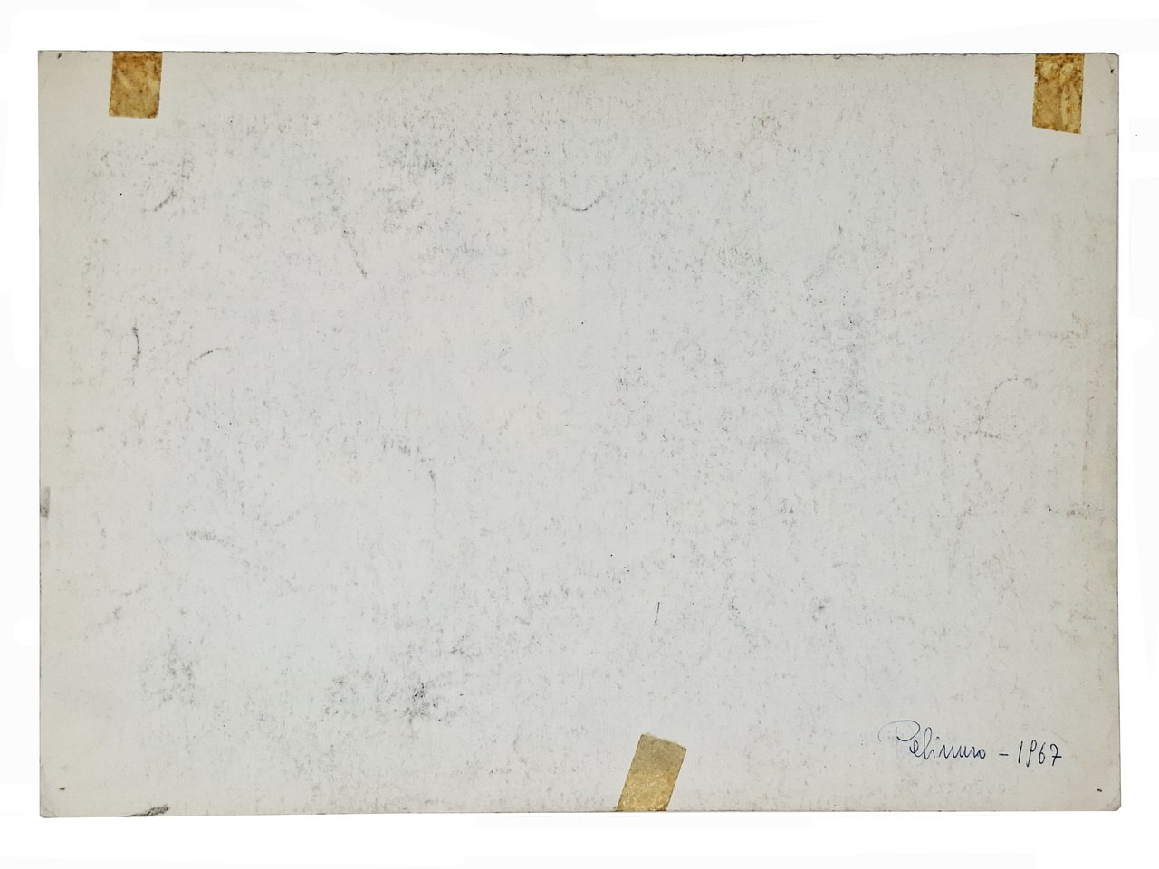 su un foglio da disegno, di dimensioni 34 x 24 cm circa, è stato realizzato, presumibilmente utilizzando un carboncino, un bel panorama delle scogliere (?) di Palinuro. In basso a sinistra è presente la firma dell'autrice dell'opera: Bestazzi. Si tratta di Miranda Bestazzi (1931 - 1973), pittrice e smaltatrice italiana, attiva principalmente nel torinese e nel cuneese, nell'ambito della 'Comunità Artistica' fondata da Idro Colombi. La sua produzione comprende dipinti e, in modo significativo, smalti su rame, spesso realizzati in collaborazione proprio con Idro Colombi negli anni '60. L'artista è ricordata come una delle figure femminili che hanno contribuito alla rinascita dell'arte dello smalto a Torino nel secondo dopoguerra. E' ricordata, per altro, la sua presenza in contesti storici artistici legati a Dronero e al Museo Mallè. Sul retro del foglio, a biro blu, è indicato, in calligrafia corsiva, sono indicati il soggetto e la data dell'opera 'Palinuro - 1967'. Stato di conservazione: disegno originale decisamente ben conservato. Sul retro del foglio sono presenti i resti di tre piccoli pezzi di nastro adesivo che, probabilmente, in passato, era servito per fissare l'opera a qualche supporto. L'opera in vendita fa parte di un'insieme di opere originali di Miranda Bestazzi, in nostro possesso.