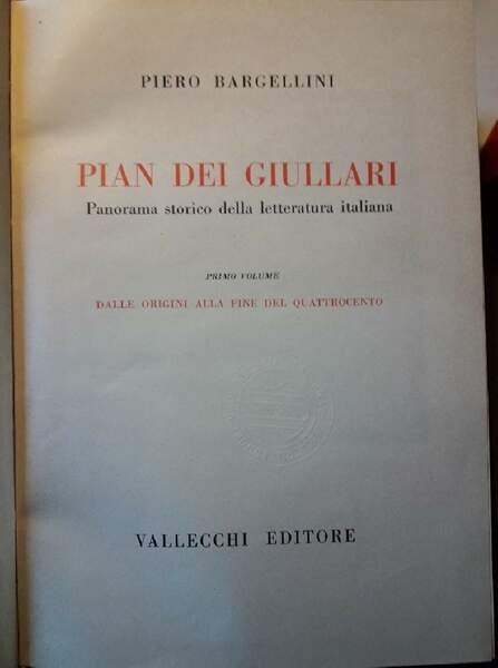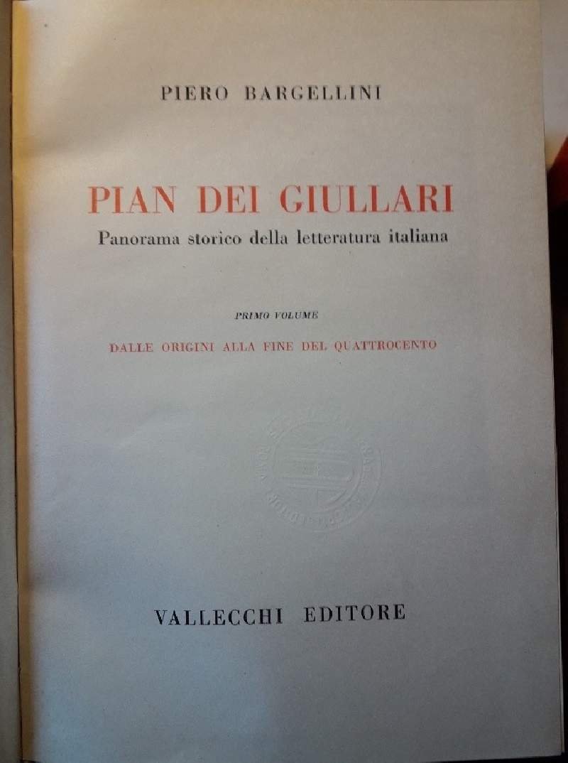 PIAN DEI GIULLARI-PANORAMA STORICO DELLA LETTERATURA ITALIANA-3 VOLL. IN COFANETTO(1956) | Libri antichi e moderni | Bargellini Piero