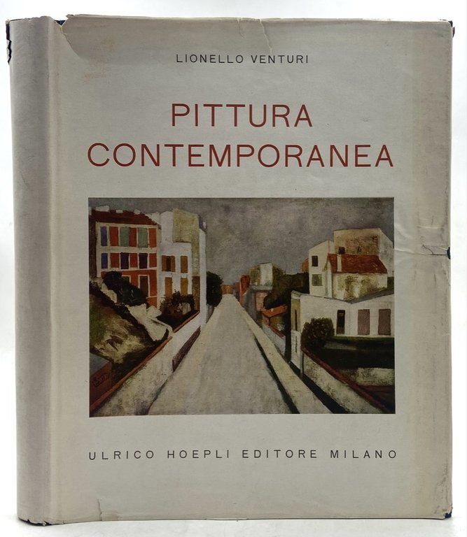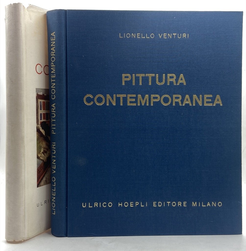 Legatura editoriale in tela rigida con sovraccoperta (difetti), cm 28 x 23, pp 70 (2) + XII tavole a colori e 239 (1) in nero. Difetti sulla sovraccoperta, ben conservato l’interno. Edizione italiana, tirata in 1000 esemplari numerati, di questo lavoro di Venturi che intende offrire un panorama, attraverso un breve testo e moltissime riproduzioni di dipinti, sull’arte in Europa e America tra il 1905 e il 1945. Il libro, apparso anche in francese, fu pubblicato quando lo storico dell’arte, allontanato dall’insegnamento per non aver firmato il giuramento di fedeltà al fascismo, rientrò in patria ed assunse la cattedra di storia dell’arte a Roma. Antifascista e collaboratore di Gualino, Lionello Venturi fu uno dei più importanti critici d’arte del novecento italiano, curò la retrospettiva di Modigliani nel 1930 a Venezia e il primo catalogo ragionato di Cézanne.