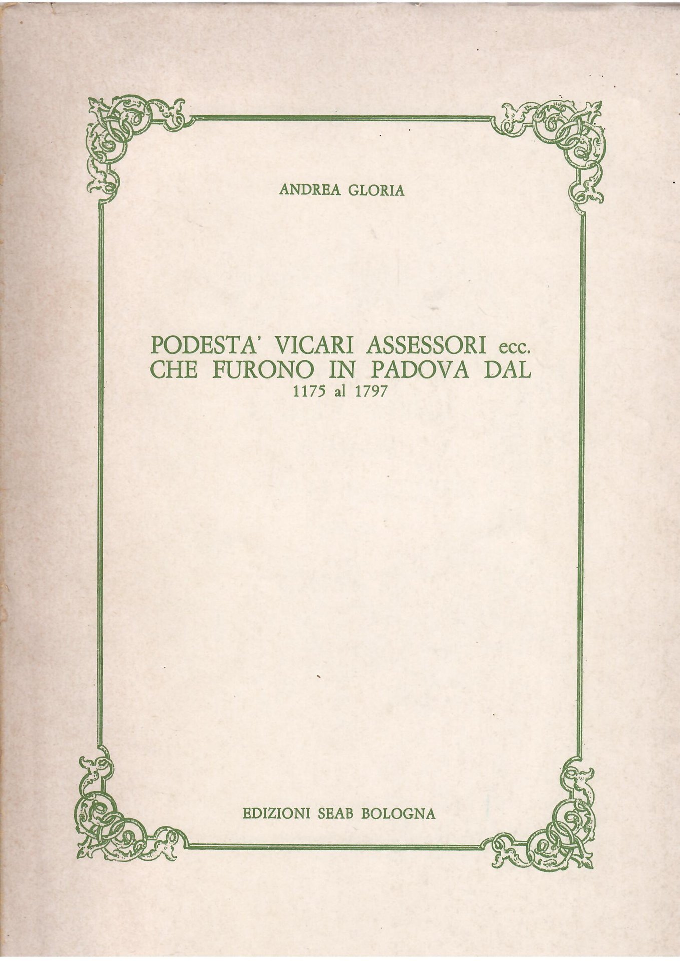 PODESTA' VICARI ASSESSORI ECC. CHE FURONO IN PADOVA DAL 1175 - AL 1797 | Libri antichi e moderni | Andrea Gloria