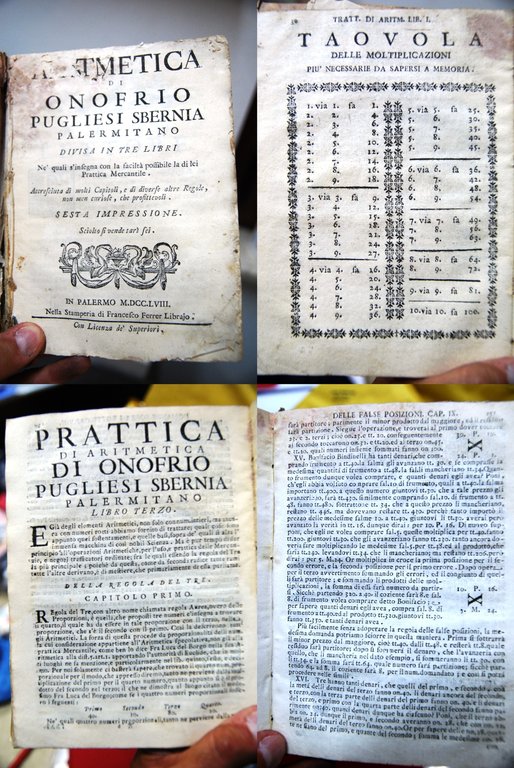 Prattica di aritmetica (in 3 volumi uniti) | Libri antichi e moderni | Onofrio Pugliesi Sbernia Palermitano