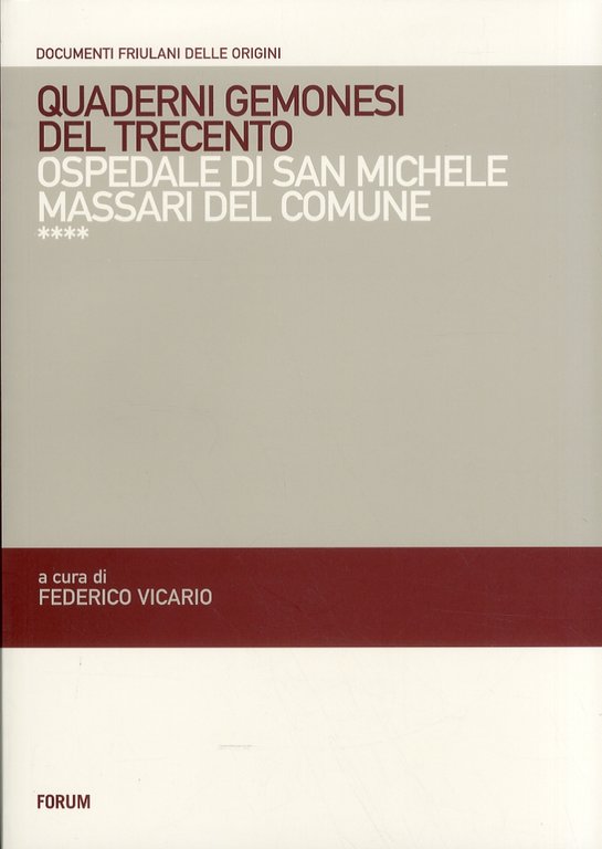 Quaderni gemonesi del Trecento. Ospedale di San Michele Massari del comune, Udine, Forum, 2011 | Libri antichi e moderni | Vicario F.
