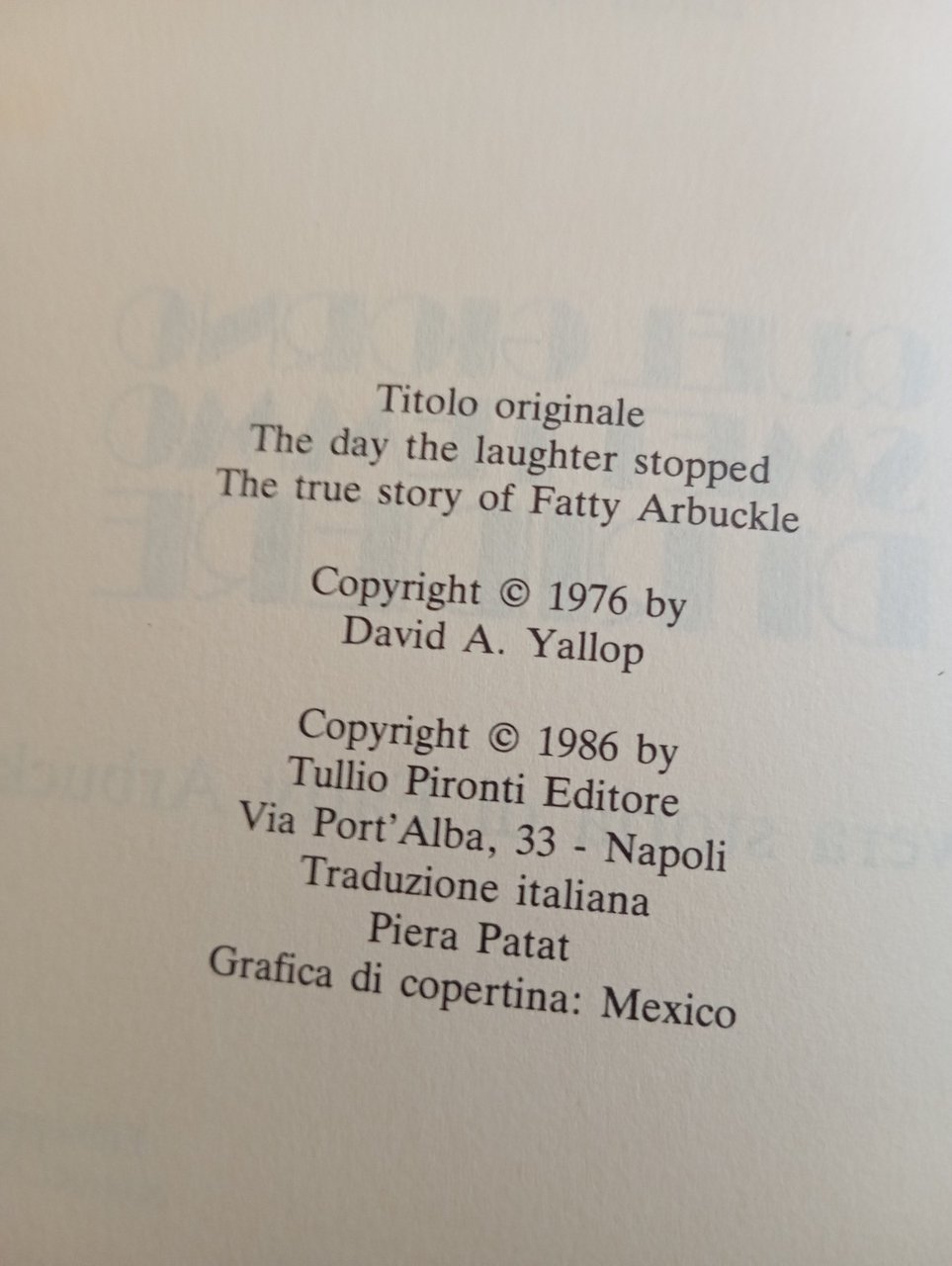 Quel giorno smettemmo di ridere, Fatty Arbuckle, David Yallop, Pironti, 1986