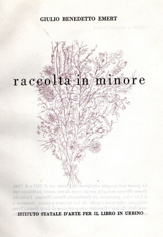 Decorazione del frontespizio di Fiorella Giuliani (litografia) . 16mo. pp. 48. . Molto buono (Very Good). . Edizione originale di 130 es. numerati. .