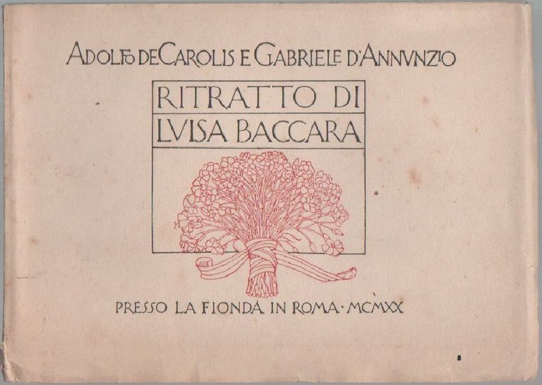 Xilografie originali di Adolfo De Carolis: Ritratto della Baccara in sanguigna, frontespizio, testatine, finalini Brossura a due colori con xilografia in rosso di Adolfo De Carolis. 16mo (cm 21x14). pp. 44. . Ottimo (Fine). . Prima edizione (First Edition). Letteratura italiana del 900 [Gambetti, 2007] Gambetti Lucio, Vezzosi Franco, Rarità bibliografiche del Novecento italiano. Repertorio delle edizioni originali. Milano, Edizioni Sylvestre Bonnard, 2007. Due scritti sulla pianista che visse con l'Autore al Vittoriale dal 1920 al 1938, già apparsi su periodici dello stesso anno.