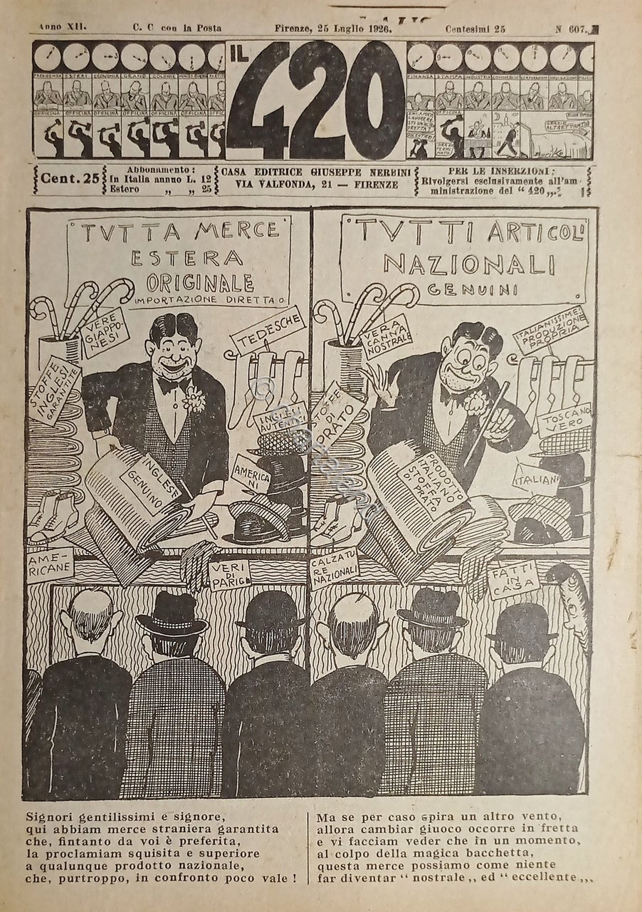 Rivista di Satirica Umoristica - IL 420 - Anno XII - N. 607 - 1926 | Libri antichi e moderni |
