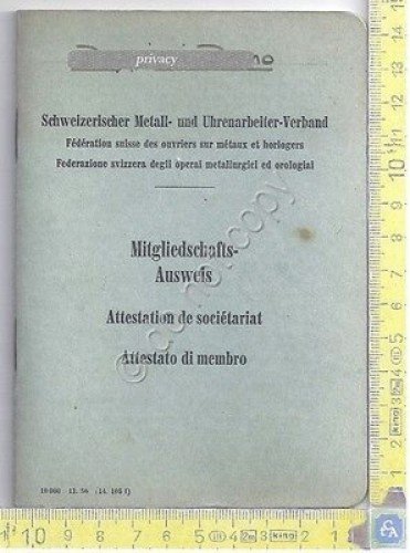 Sindacato - Federazione Svizzera Operai e Orologiai - Attestato di Membro - 1957 | Libri antichi e moderni |