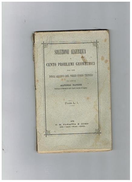 Soluzione algebrica di cento problemi geometrici per uso degli allievi del terzo corso tecnico. | Libri antichi e moderni | Danese Alfonso.