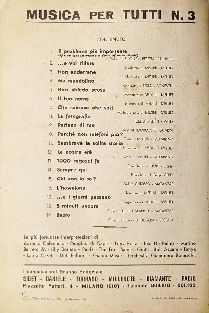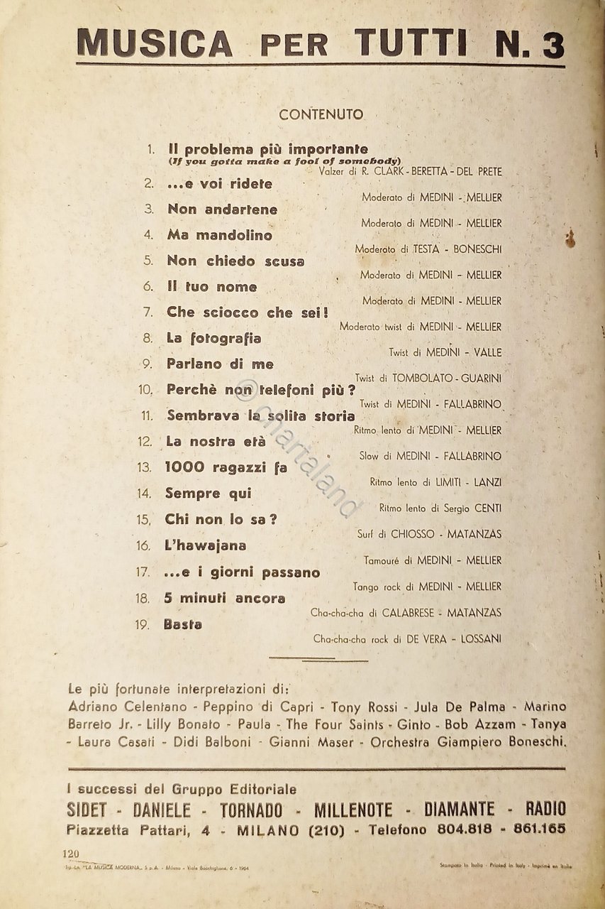 Spartiti - Musica per Tutti N. 3 - I Successi del Gruppo Editoriale SIDET - 1964